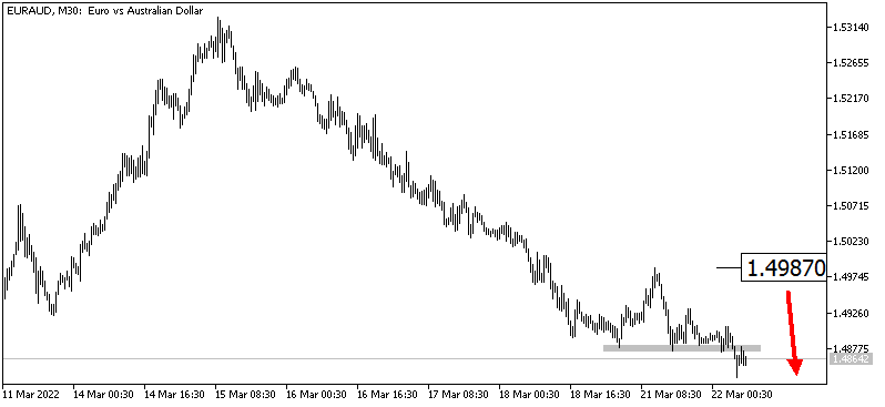 Валутната двойка се намира в низходящ тренд и регистрира пробив на подкрепа, който осигурява техническа възможност за поевтиняване. Пробив на локалния максимум при 1.4987 ще развали идеята.